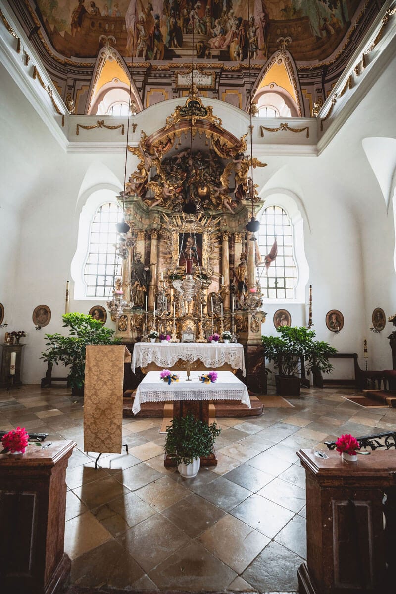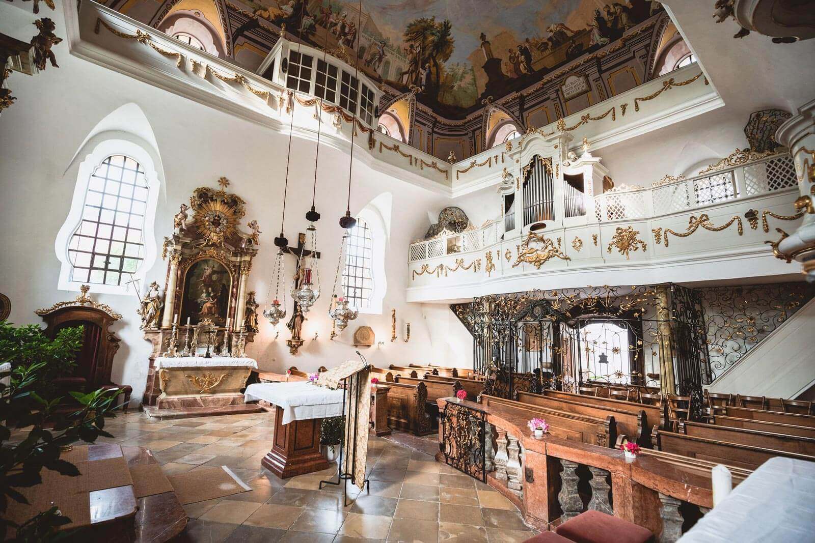 Aus kunsthistorischer Sicht ist die Kapelle Mariä Heimsuchung ein äußerst interessanter Kirchenbau und stellt ein bedeutendes Beispiel für den Übergang vom überschwänglichen Rokoko hin zum Klassizismus dar. Eine Empore teilt den hohen Rechteckraum mit Stichkappengewölbe in zwei Geschosse.